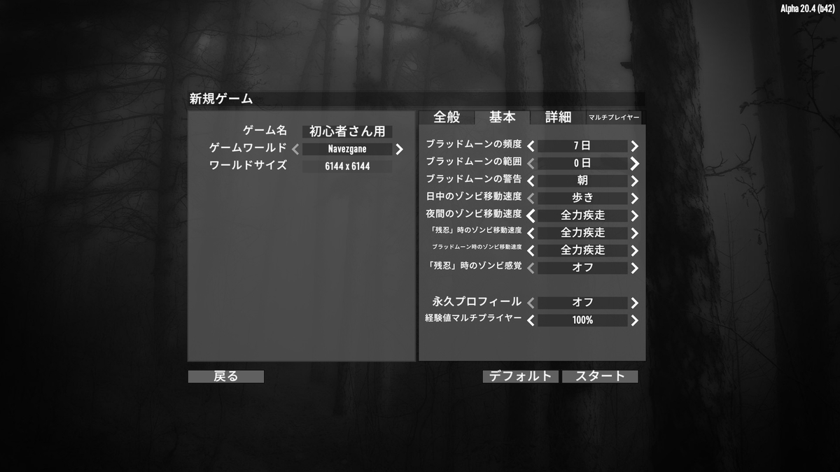 基本設定はほとんどをデフォルトのままで良いと思います。難易度設定を上げるという選択肢も無きにしも非ずですが、基本的にやめましょう。理由としては、このゲームの生き残れるかはセオリーを知っているか知らないかにかかります。自信のあるゾンビプレイヤーでも、最初の数ゲームは捨て石になると思います。セオリーを覚えるまでは、低難易度で慣らしていきましょう。因みに今回から残忍時の感覚という和訳すると分けわからんのが追加されています。これをオンにするとそこら中からゾンビが襲ってきて袋にされるので気を付けましょう(振りじゃねぇぞ!)