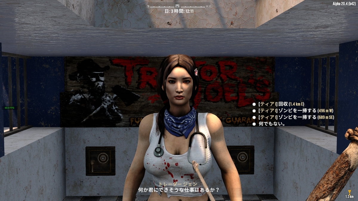 では、今後は何をすればいいのか、ということになるので、最初はトレーダーさんに会い、クエストを受領することになります。