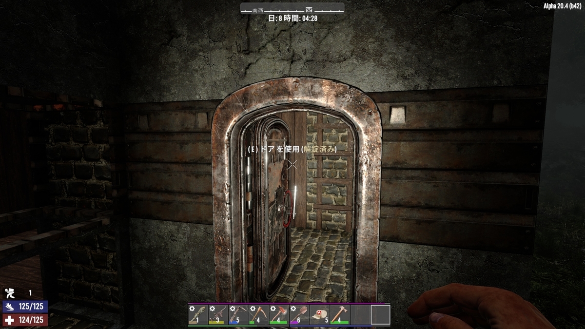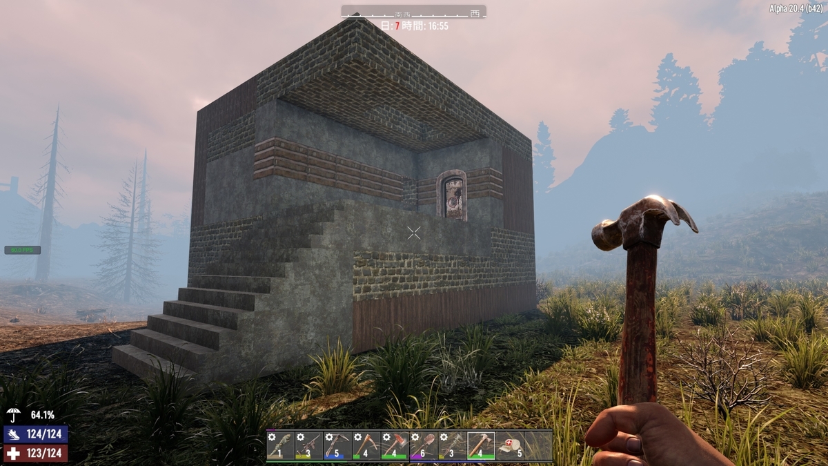 最低強化はドア周辺の玉石かとドアの鉄ドア化ですかね、強度が低いと割と抜かれる可能性があるので注意が必要です。最悪は屋根に上って朝まで過ごすという手も使えます、その際は梯子を外すことを忘れないようにしてください(下の土台が相当抜かれなければ基本的に倒壊しない)。